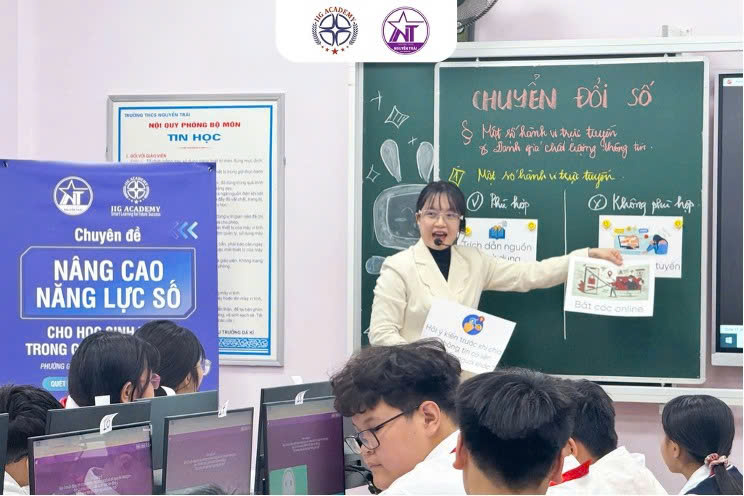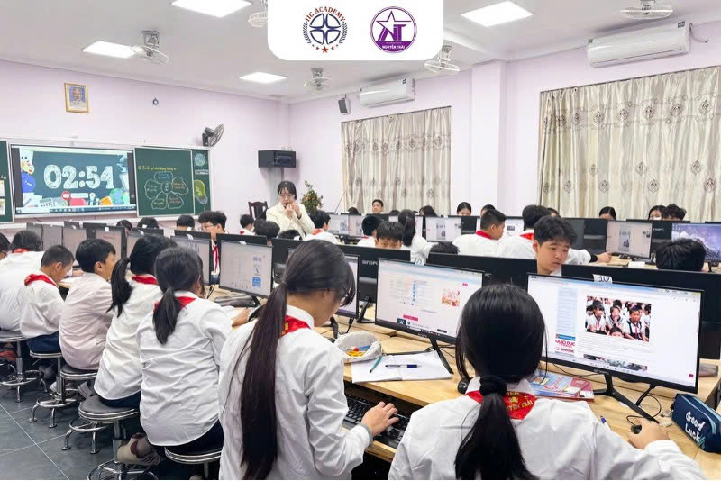 Mới đây, nhà trường phối hợp cùng IIG Academy tổ chức thành công chuyên đề “Nâng cao năng lực số cho học sinh THCS trong giai đoạn hiện nay” dưới hình thức một tiết Tin học thực tế. Điểm nổi bật của chuyên đề là việc đưa mô hình dạy học Tin học theo chuẩn quốc tế vào lớp học, với sự giảng dạy trực tiếp của đội ngũ giáo viên IIG Academy, kết hợp cùng sự tham gia dự giờ, trao đổi của cán bộ quản lí và giáo viên Tin học trên địa bàn.