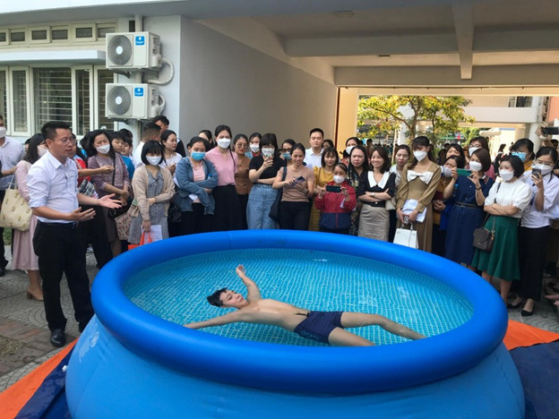 Tại buổi tập huấn, chuyên gia của Viện Khoa học an toàn Việt Nam đã hướng dẫn một số kỹ năng “Thực hành phòng, tránh tai nạn thương tích ” cho giáo viên như: Phòng tránh, đuối nước; Sơ cấp cứu kịp thời, đúng cách; Phòng chống ma túy và chất gây nghiện. Chuyên gia cũng hướng dẫn thực hành các kỹ năng chống đuối nước trong học sinh.