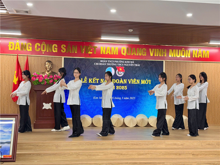 Với những cố gắng không ngừng nghỉ, hôm nay, ngày 26/3/2025, trường THCS Nguyễn Trãi vinh dự tổ chức Lễ kết nạp Đoàn viên mới cho 21 đội viên ưu tú. Đây là những học sinh có thành tích xuất sắc trong học tập, có phẩm chất đạo đức tốt và tích cực đóng góp cho phong trào Thanh thiếu niên của nhà trường. Lễ kết nạp là một dấu mốc quan trọng, ghi nhận sự trưởng thành của các em trong quá trình phấn đấu để đứng vào hàng ngũ của Đoàn TNCS Hồ Chí Minh.