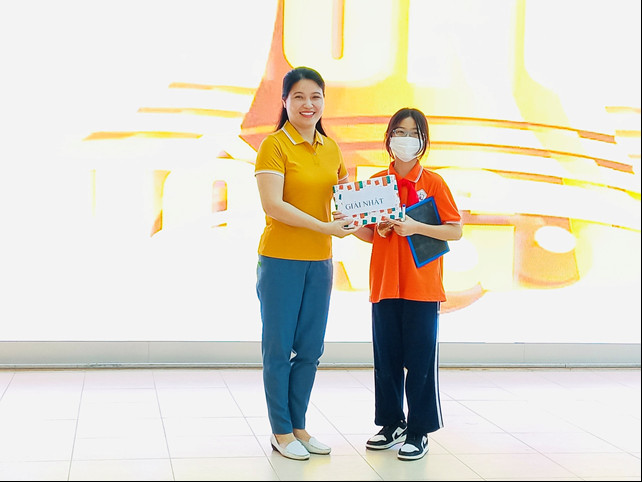 Thí sinh Trần Hà Trân lớp 7A1 đạt giải nhất của cuộc thi