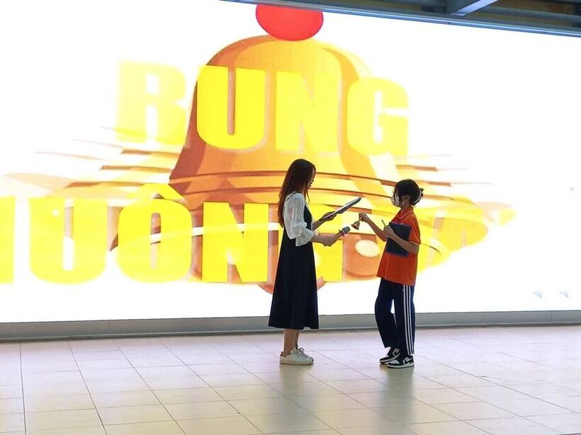 Nội dung các phần thi không chỉ là thử thách trình độ tiếng Anh mà còn là thử tài hiểu biết xã hội của 100 bạn học sinh trực tiếp tham gia cuộc chơi Rung chuông Vàng.