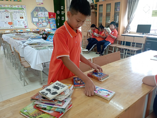 Thư viện đã nhận được rất nhiều thể loại sách khác nhau do các con học sinh đến quyên góp, ủng hộ. Sách giáo khoa năm trước không còn sử dụng đến, sách văn học, sách Bác Hồ, sách dành cho lứa tuổi thiếu nhi được các bạn học sinh mang đến tặng lại cho thư viện. Mong rằng tới đây kho sách của Thư viện sẽ ngày một dày lên, phong phú về chủng loại hơn nữa để đáp ứng nhu cầu ngày một lớn của giáo viên và học sinh toàn trường.