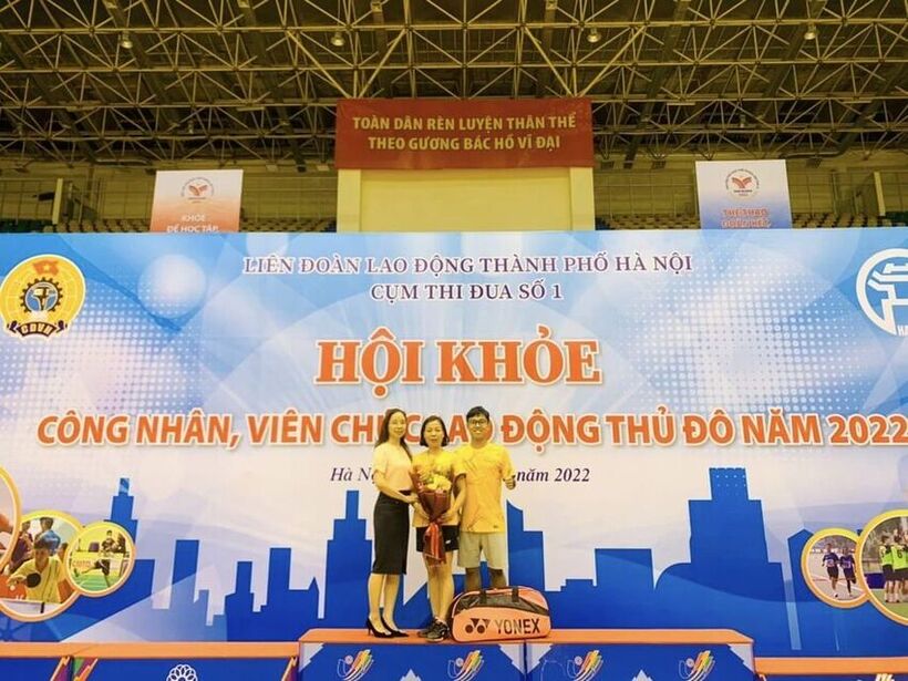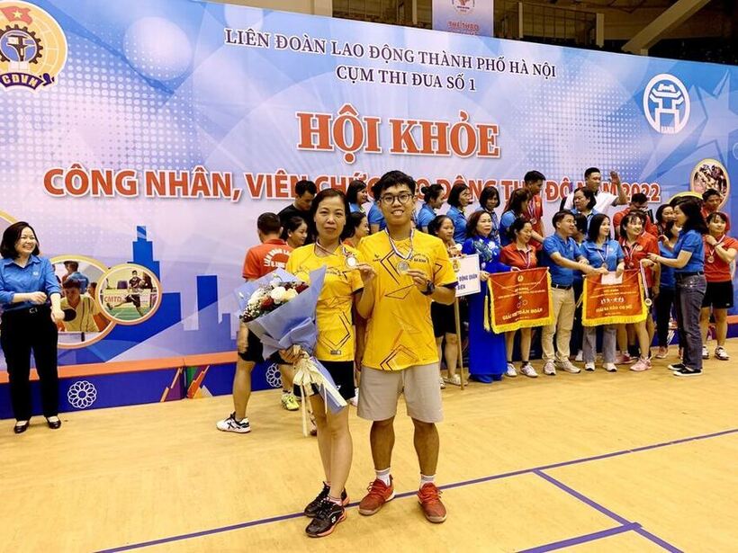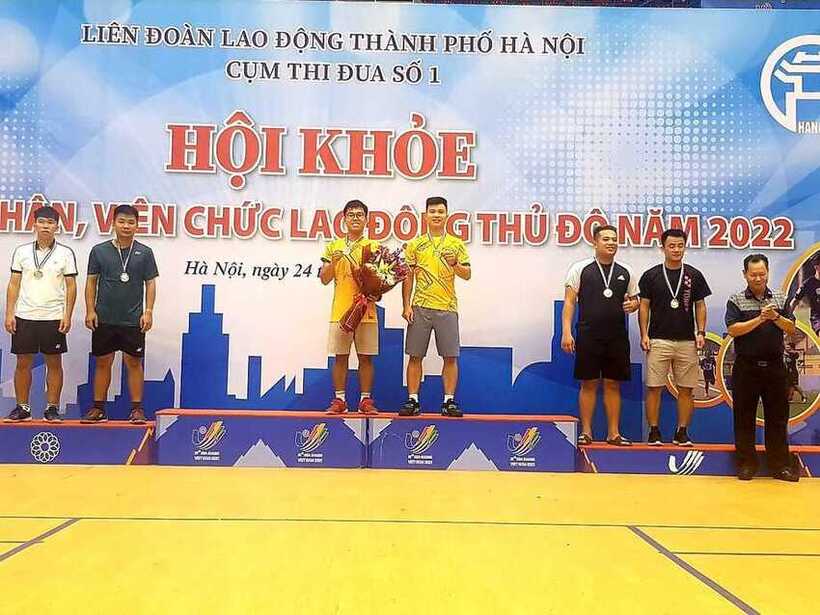Trường THCS Nguyễn Trãi, quận Ba Đình tham gia hội khỏe ở nội dung thi đấu Cầu lông đôi nam, đôi nữ, thầy giáo Trần Hoàng Lân đạt HC Vàng, cô giáo Nguyễn Thị Hồng Hạnh đạt HC Đồng.