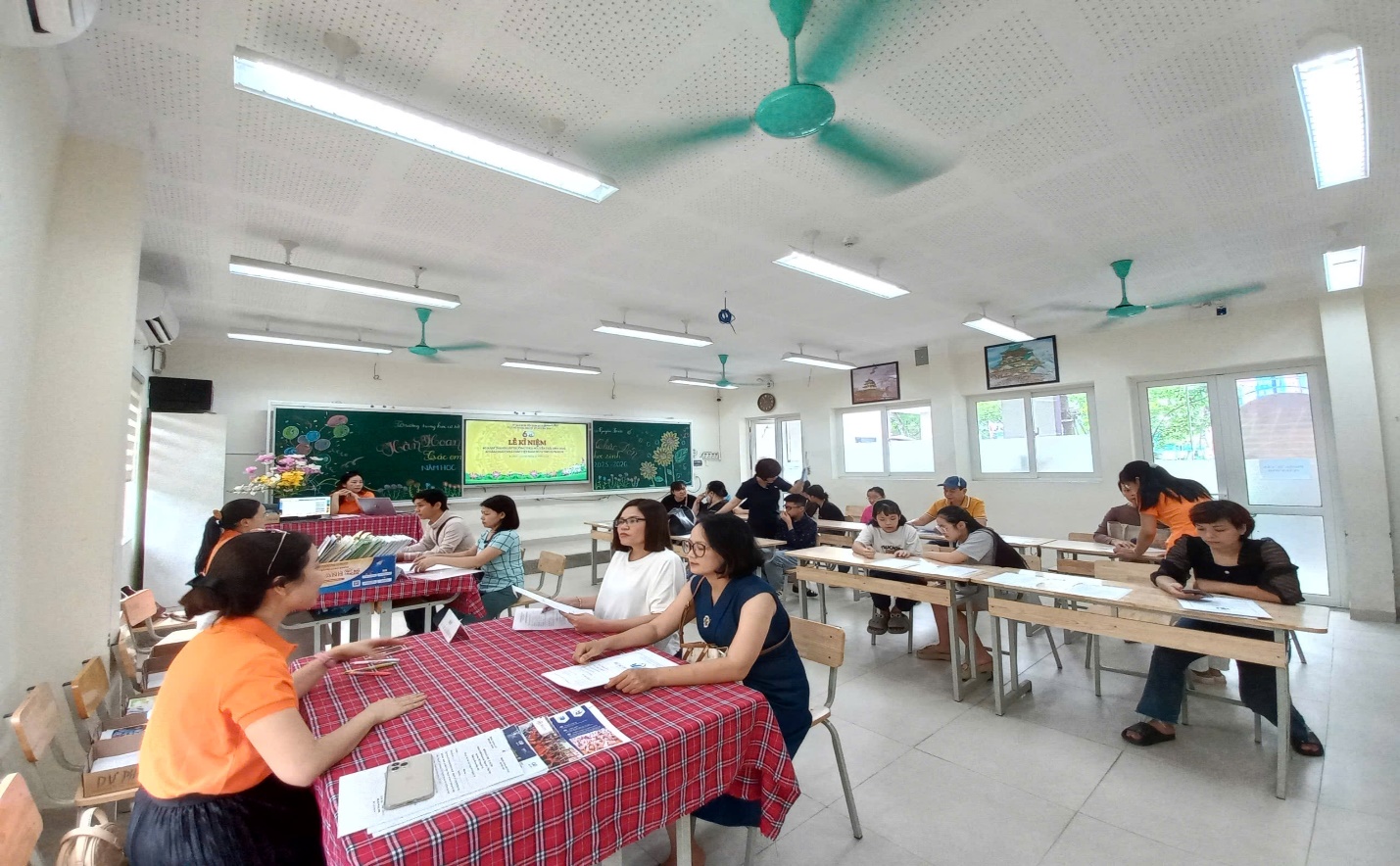 Trong không khí làm việc khẩn trương, nghiêm túc, các thầy cô giáo được phân công đã thể hiện tinh thần trách nhiệm cao, tận tình hỗ trợ phụ huynh từ việc tiếp nhận hồ sơ, kiểm tra thông tin, hướng dẫn quy trình đến việc phát đồng phục và giải đáp các thắc mắc phát sinh. Do đã có hướng dẫn tuyển sinh trực tuyến nên khi nộp hồ sơ trực tiếp, các thủ tục đều được thực hiện nhanh gọn, các thầy cô hướng dẫn chu đáo và cởi mở, tạo được sự tin tưởng, hài lòng từ phía phụ huynh.