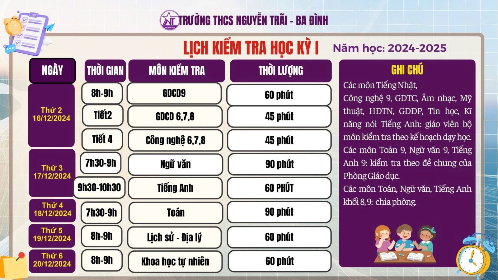 Thông báo: Lịch kiểm tra học kì I năm học 2024 - 2025