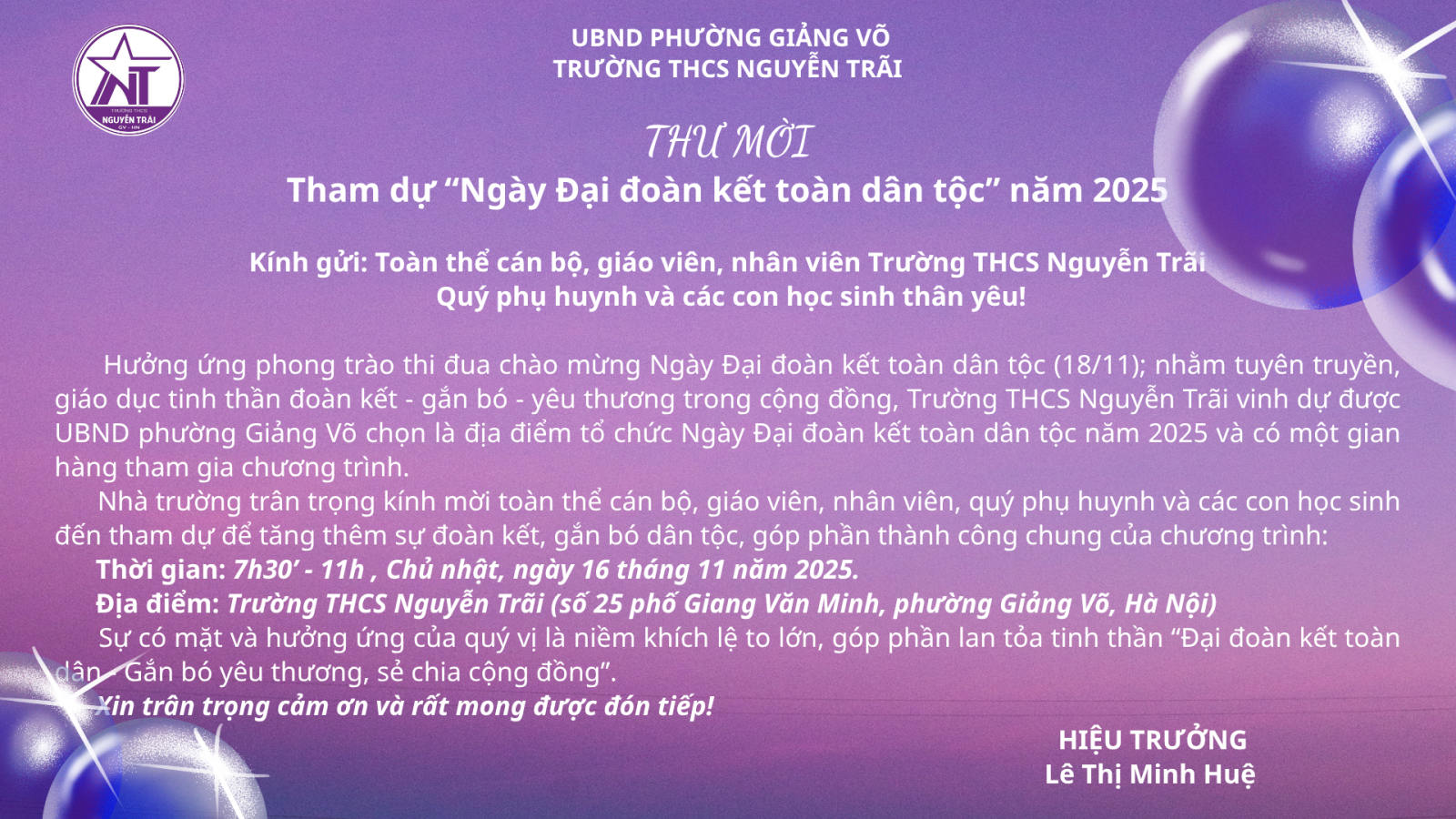 Nhà trường trân trọng kính mời!