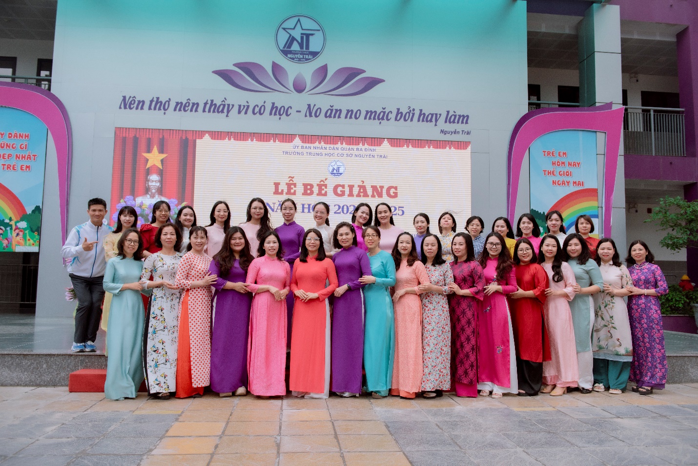 Hà Nội, ngày 26 tháng 5 năm 2025 – Trường THCS Nguyễn Trãi, quận Ba Đình, vừa tổ chức thành công Lễ tổng kết năm học 2024-2025, đánh dấu một năm đầy ắp những thành tựu nổi bật trong công tác quản lý, giảng dạy và học tập. Buổi lễ không chỉ là dịp để nhìn lại những nỗ lực đã qua mà còn là cơ hội để tôn vinh những đóng góp xuất sắc của tập thể giáo viên và học sinh, khẳng định vị thế của nhà trường là một trong những cơ sở giáo dục hàng đầu của thủ đô.
