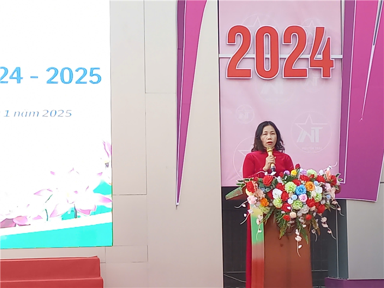 Cô Lê Thị Minh Huệ – Hiệu trưởng nhà trường đã báo cáo sơ kết học kì 1 năm học 2024 – 2025