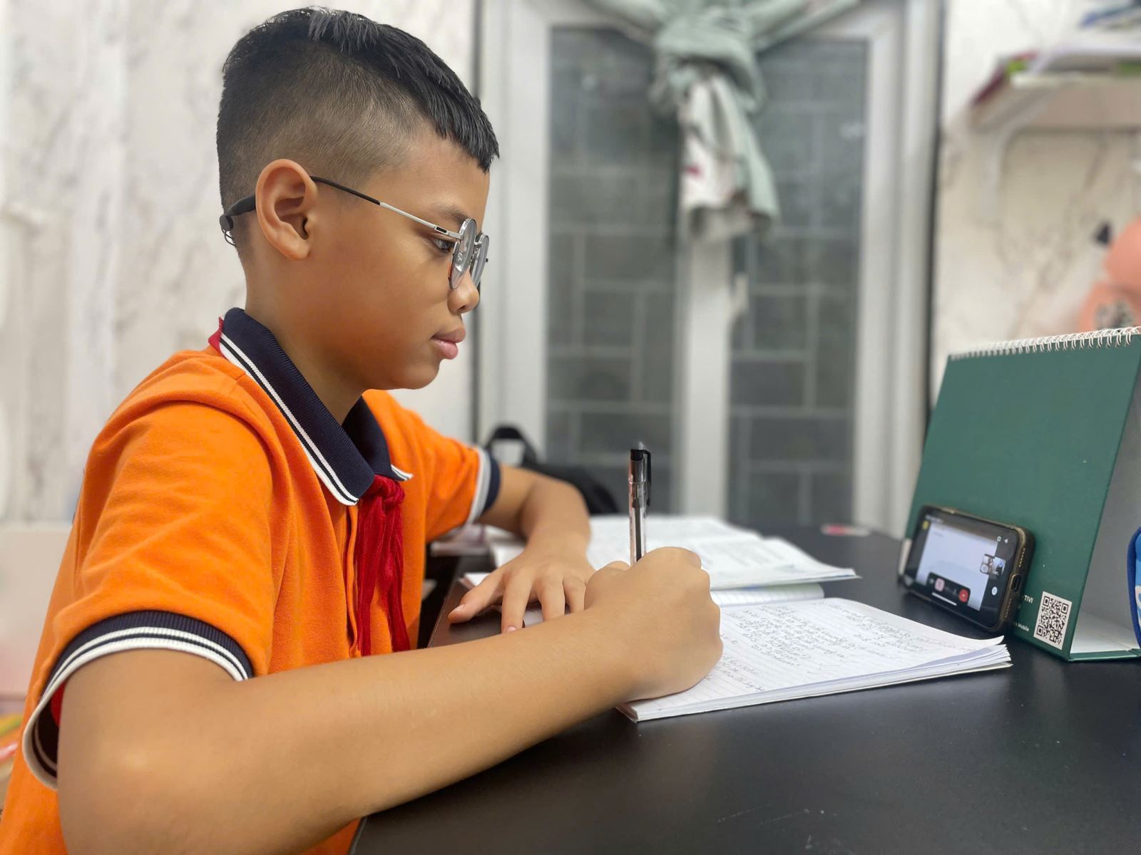 Hình ảnh học sinh tham gia học trực tuyến tại nhà