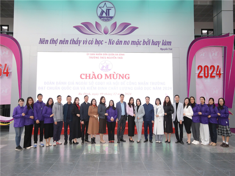 Theo quyết định số 2757/QĐ - SGDĐT về việc thành lập Đoàn đánh giá ngoài cơ sở giáo dục mầm non, giáo dục phổ thông để công nhận trường đạt chuẩn Quốc gia và kiểm định chất lượng giáo dục, sáng ngày 9/12/2024, trường THCS Nguyễn Trãi vinh dự đón Đoàn đánh giá ngoài của Sở GDĐT Hà Nội về kiểm tra, đánh giá công tác tự kiểm định chất lượng giáo dục và công nhận trường đạt chuẩn quốc gia. Đoàn đánh giá ngoài do đồng chí Nguyễn Thị Thúy Bạch, Phó Trưởng phòng, Phòng QLT&KĐCLGD làm trưởng đoàn; đồng chí Dương Phi Tường, Chuyên viên, Phòng QLT&KĐCLGD làm thư ký cùng 05 thành viên.