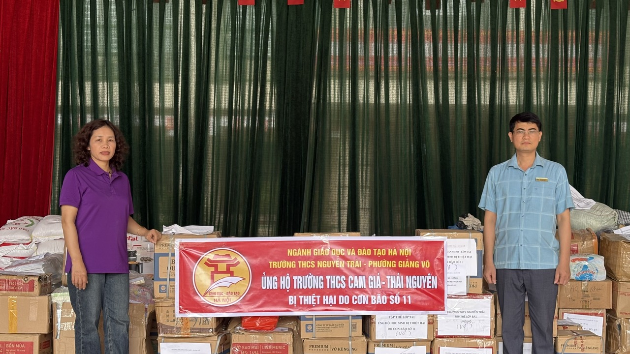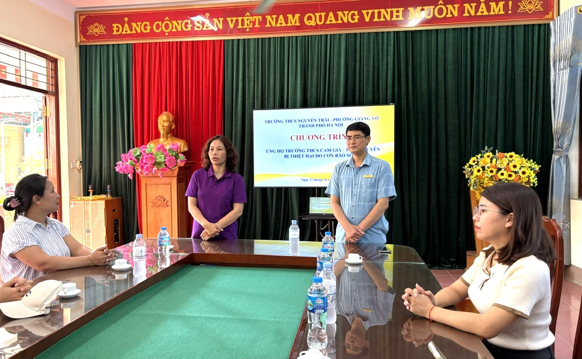 Sáng ngày 17 tháng 10 năm 2025, đoàn công tác của trường THCS Nguyễn Trãi - Giảng Võ đã có chuyến đi thăm hỏi, trao quà hỗ trợ tại trường THCS Cam Giá - Thái Nguyên – ngôi trường chịu nhiều thiệt hại nặng nề sau đợt mưa lũ do cơn bão số 11 gây ra.