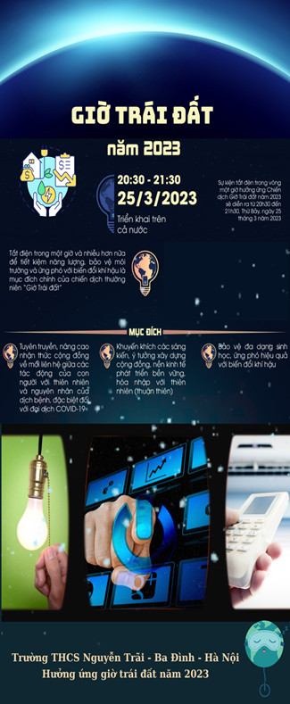 Năm 2023, Hà Nội tổ chức tắt đèn chiếu sáng công cộng, chiếu sáng quảng cáo tại một số khu vực công cộng, tuyến phố (trừ các đèn tại khu vực các bệnh viện, đèn tín hiệu giao thông, đèn chiếu sáng phục vụ bảo vệ an ninh tại các khu vực trọng yếu) và kêu gọi tất cả các gia đình tắt các thiết bị điện không thực sự cần thiết từ 20h30 đến 21h30 ngày 25-3-2023.