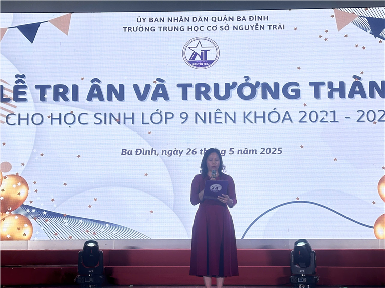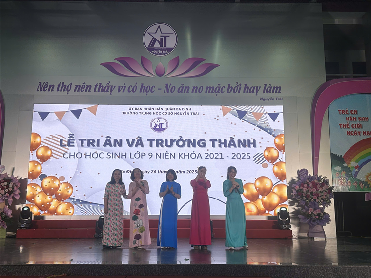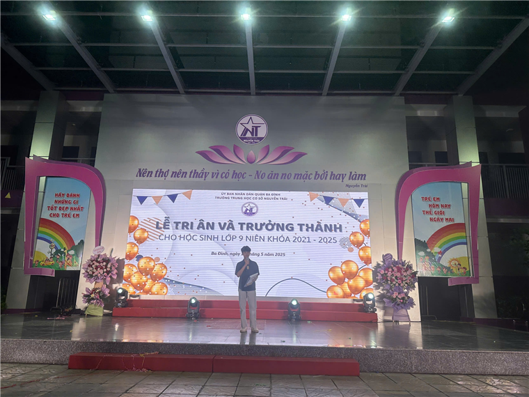 Lễ Tri ân và Trưởng thành khối 9 niên khóa 2021 – 2025 không chỉ là một buổi lễ tổng kết ý nghĩa mà còn là dấu mốc quan trọng, đánh dấu sự trưởng thành về nhận thức, tình cảm và lý tưởng sống của các em học sinh. Trường THCS Nguyễn Trãi tin rằng, hành trang các em mang theo không chỉ là kiến thức, mà còn là lòng biết ơn, sự tử tế, dũng cảm và ước mơ cháy bỏng.