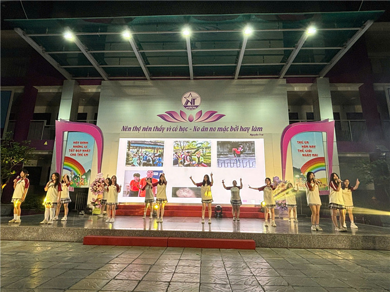 Sau những phút lắng đọng là phần bùng nổ đầy năng lượng với tiết mục đồng diễn toàn khối – nơi các em cùng nhau ghi dấu khoảnh khắc đáng nhớ nhất của thời học sinh. Những cái nắm tay, cái ôm, ánh mắt thân thương giữa bạn bè, thầy trò... đã viết nên một trang kỷ niệm không thể quên trong đời học sinh.