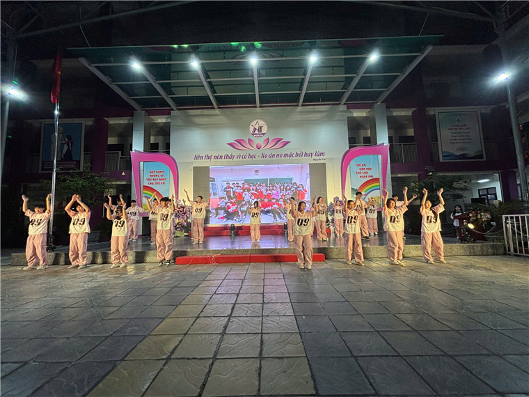 Buổi lễ mở đầu bằng tiết mục văn nghệ sôi động và tươi trẻ của học sinh khối 9, thể hiện tinh thần đoàn kết, sáng tạo, mang đậm màu sắc tuổi học trò. Và mỗi giai điệu là một lời tri ân, mỗi điệu múa là một dấu chấm lặng cho những năm tháng tươi đẹp. Điệu nhảy nhảy nhẹ nhàng, trẻ trung như tuổi học trò do tập thể lớp 9A4 thể hiện.