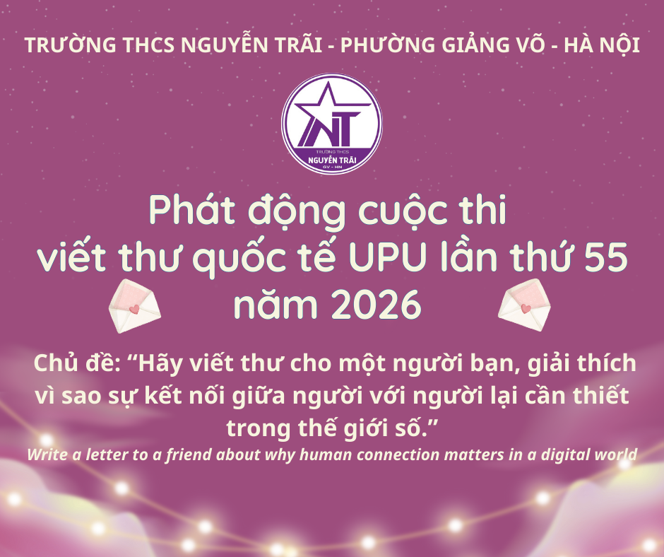 Trường THCS Nguyễn Trãi phát động cuộc thi Viết thư UPU lần thứ 55 từ ngày 12/1/2026 đến ngày 31/1/2026.
