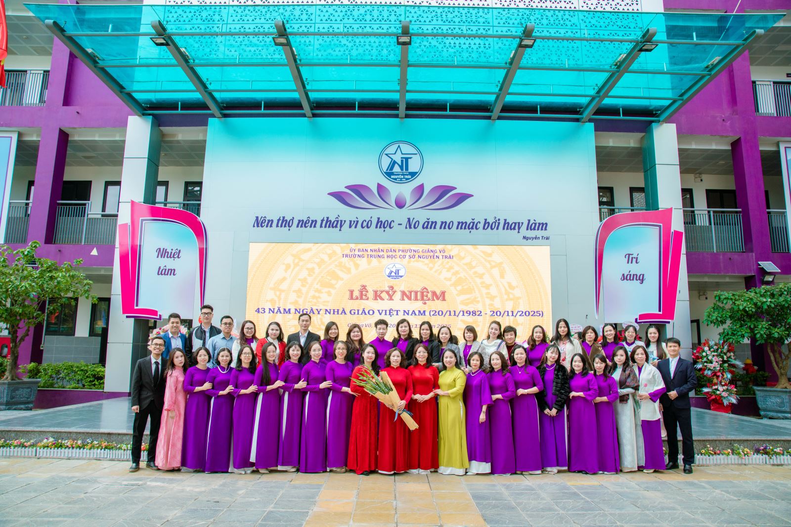 Sáng ngày 20/11, trong không khí hân hoan của cả nước hướng về ngày tri ân các thầy cô giáo, Trường THCS Nguyễn Trãi – phường Giảng Võ đã long trọng tổ chức Lễ kỷ niệm 43 năm Ngày Nhà giáo Việt Nam 20-11. Buổi lễ là dịp để tập thể cán bộ, giáo viên, nhân viên và học sinh nhà trường bày tỏ lòng biết ơn sâu sắc đối với sự cống hiến thầm lặng nhưng vô cùng cao quý của các thầy cô – những người chèo lái con thuyền tri thức.