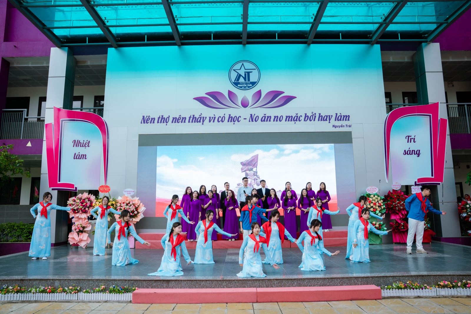 Mở đầu chương trình là các tiết mục văn nghệ đặc sắc do chính giáo viên và học sinh Trường THCS Nguyễn Trãi biểu diễn. Những giai điệu trong trẻo, những điệu múa duyên dáng đã tạo nên bầu không khí ấm áp, trang trọng, thể hiện tình cảm chân thành mà thầy và trò gửi tới ngày hội lớn của ngành giáo dục.