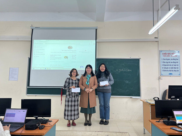 Chiều ngày 17/2/2023, theo kế hoạch công tác, trường THCS Nguyễn Trãi tổ chức buổi tập huấn bồi dưỡng CNTT cho cán bộ, giáo viên, nhân viên qua các chuyên đề: Sử dụng lịch trực tuyến; Xây dựng nhóm để gửi email tự động; Khai thác bộ nhớ dùng chung trên Google Drive và cách tạo sơ đồ tư duy, thiết kế một số trò chơi bằng các ứng dụng, phần mềm dạy học. Buổi bồi dưỡng có sự tham dự đông đủ của cán bộ, giáo viên Nhà trường.