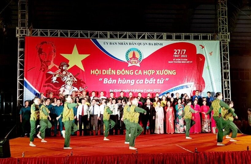 Tối ngày 14/7, cô và trò trường THCS Nguyễn Trãi cùng cán bộ, nhân dân phường Kim Mã tham gia hội diễn đồng ca hợp xướng "Bản hùng ca bất tử" do UBND quận Ba Đình tổ chức nhân kỉ niệm 75 năm Ngày Thương binh Liệt sĩ (1947-2022) 09/07/2022 với tiết mục hát múa “Đoàn vệ quốc quân”. Với giọng hát đầy cảm xúc, hoà quyện vào nhau, động tác múa khéo léo, nhịp nhàng, tiết mục đã tái hiện được không khí những năm tháng đất nước gian lao mà hào hùng, lòng quyết tâm, lạc quan về ngày mai chiến thắng. Tiết mục đã để lại niềm xúc động, ấn tượng sâu sắc trong lòng khán giả.