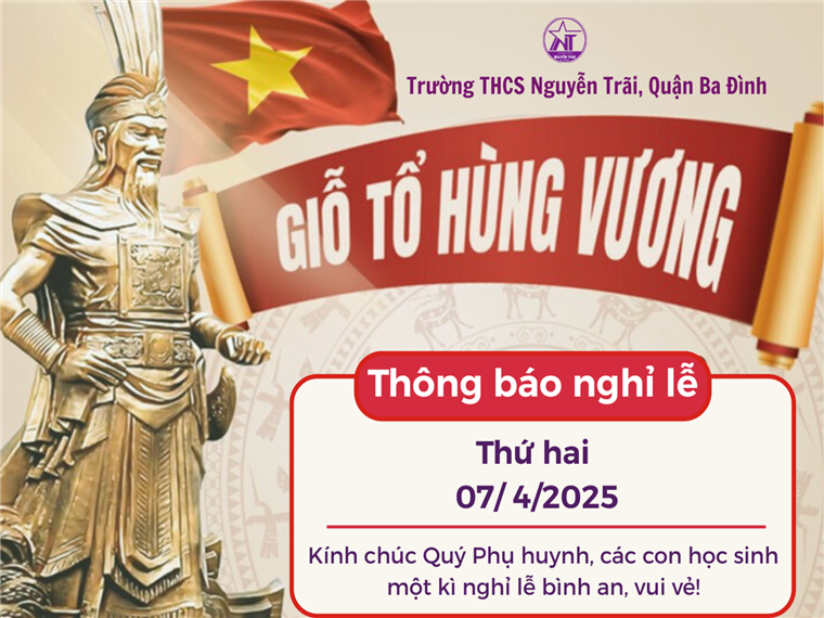 Trường THCS Nguyễn Trãi thông báo Lịch nghỉ Lễ Giỗ Tổ Hùng Vương