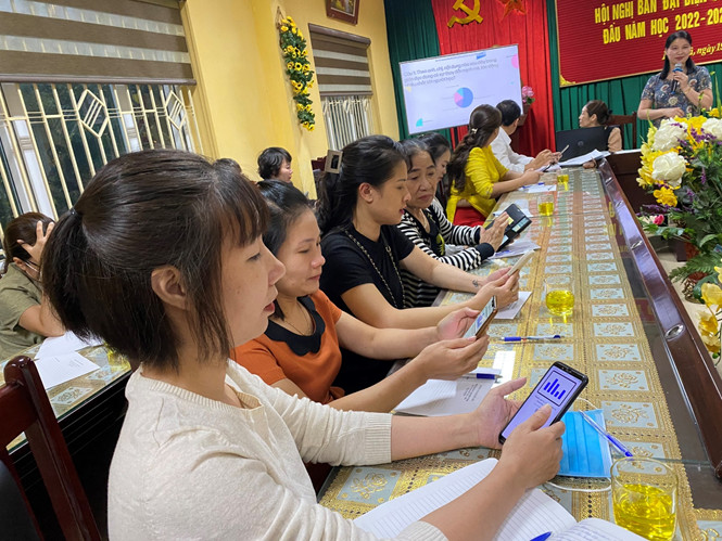 Cũng tại buổi Hội nghị, phụ huynh được tham gia thảo luận các biện pháp xây dựng Nhà trường trên phần mềm Menti.com. Các bố, mẹ được chia sẻ quan điểm của mình đối với các câu hỏi như “Nội dung nào trong giáo dục đang có sự thay đổi mạnh mẽ, tác động nhiều nhất tới người học?”, “Ở trường Nguyễn Trãi, vai trò Ban Đại diện CMHS được phát huy nhiều nhất ở trong các hoạt động nào?”, “Cách thức liên hệ nào giữa Nhà trường và gia đình là có hiệu quả nhất trong công tác phối hợp?”. Câu trả lời của các phụ huynh cho thấy bố, mẹ rất am hiểu về xu thế giáo dục ở thời điểm hiện tại cũng như nhận thức đúng đắn về vai trò của mình trong các hoạt động của Nhà trường. Qua phần chia sẻ, các GVCN cũng nắm được những cách kết nối với PHHS sau cho hiệu quả nhất.