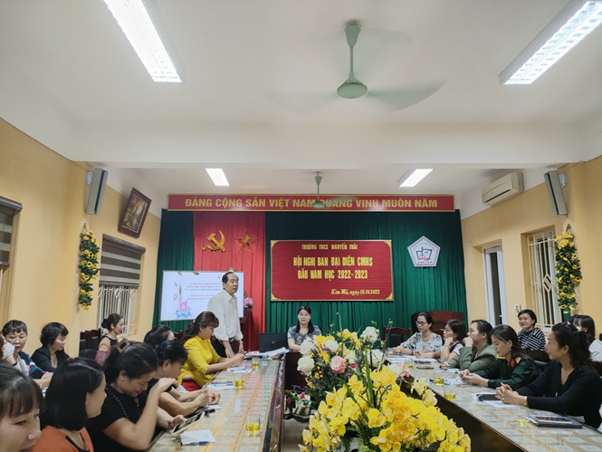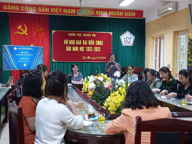 Được sự chấp thuận của Phòng GD&ĐT quận Ba Đình, vào lúc 16h30 chiều ngày 19/10/2022, trường THCS Nguyễn Trãi đã tổ chức thành công Hội nghị Ban Đại diện cha mẹ học sinh năm học 2022 – 2023. Hội nghị nhằm báo cáo đặc điểm tình hình và phương hướng, nhiệm vụ trọng tâm của nhà trường năm học 2022-2023 và đề xuất, thống nhất các biện pháp phối hợp giữa ban phụ huynh các lớp và Nhà trường trong năm học mới này. Đây cũng là dịp để Nhà trường lắng nghe ý kiến góp ý của Đại diện phụ huynh các lớp để xây dựng Nhà trường ngày một vững mạnh và gắn kết.