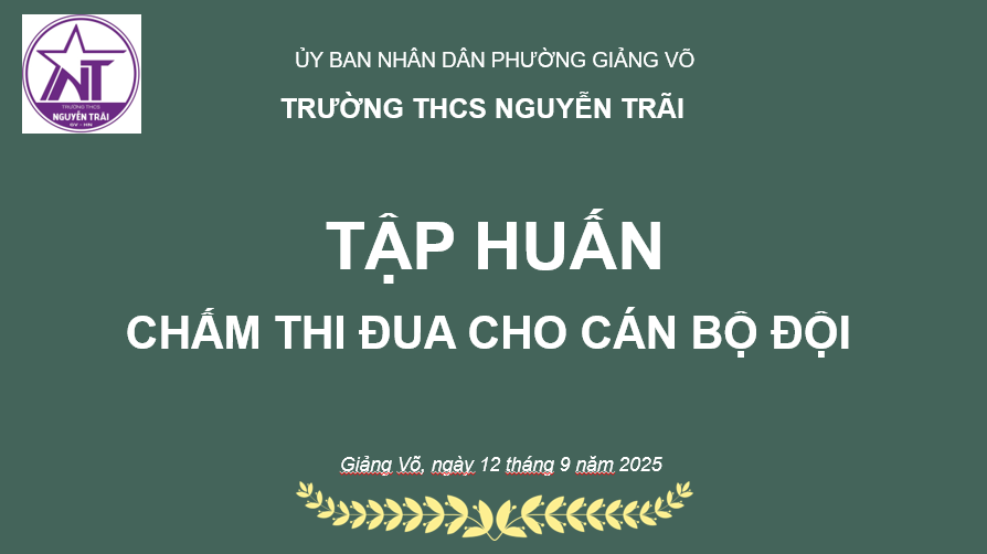 Sáng ngày 12/9/2025, Trường THCS Nguyễn Trãi đã tổ chức buổi tập huấn cho cán bộ Đội nhằm chuẩn bị cho công tác chấm thi đua năm học mới. Buổi tập huấn diễn ra trong không khí nghiêm túc, sôi nổi, với sự tham gia đầy đủ của các thành viên Đội TNXK và Sao đỏ – lực lượng nòng cốt trong hoạt động nề nếp của nhà trường.
