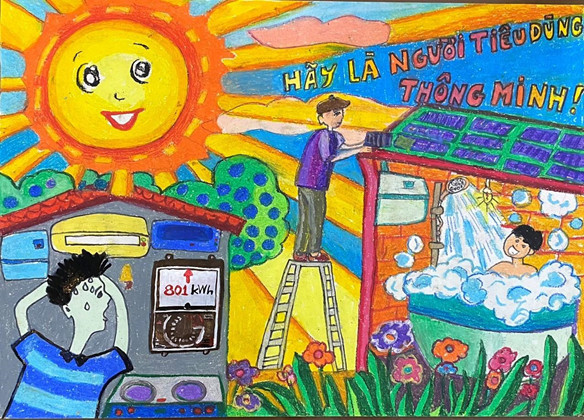 Tranh vẽ tuyên truyền cổ động sử dụng năng lượng tái tạo của học sinh quận Ba Đình