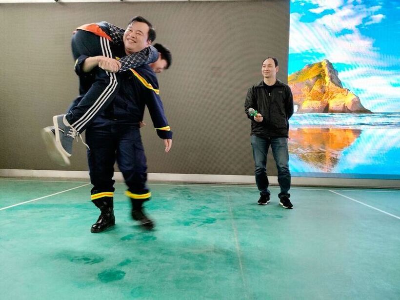 Phần thực hành kĩ năng thoát nạn và cứu hộ khi có đám cháy cũng thu hút các con học sinh tích cực tham gia.