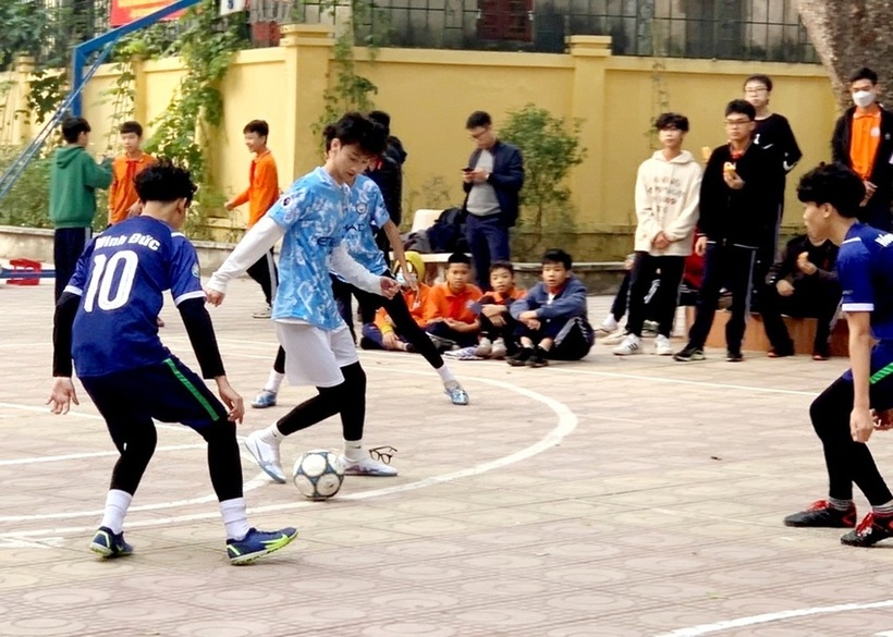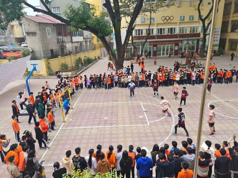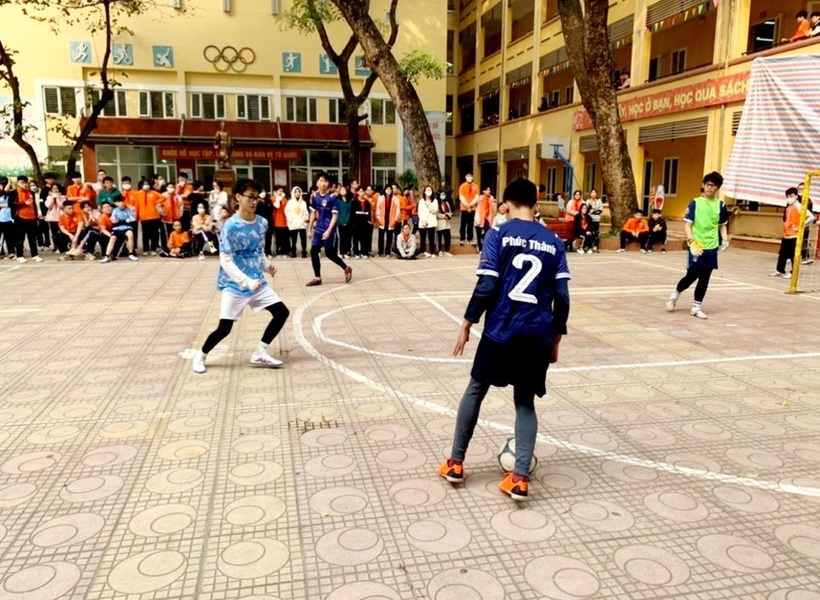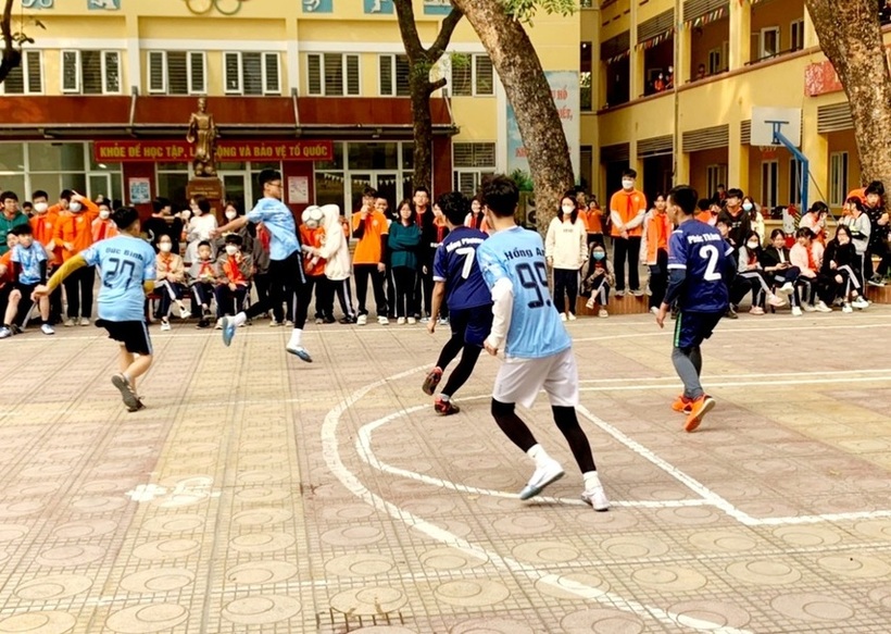 Trận đấu bán kết thứ 2 giữa lớp 9A2 và 9A5 cũng diễn ra đầy sôi động và kịch tính trong sự cổ vũ nhiệt tình của khán giả.