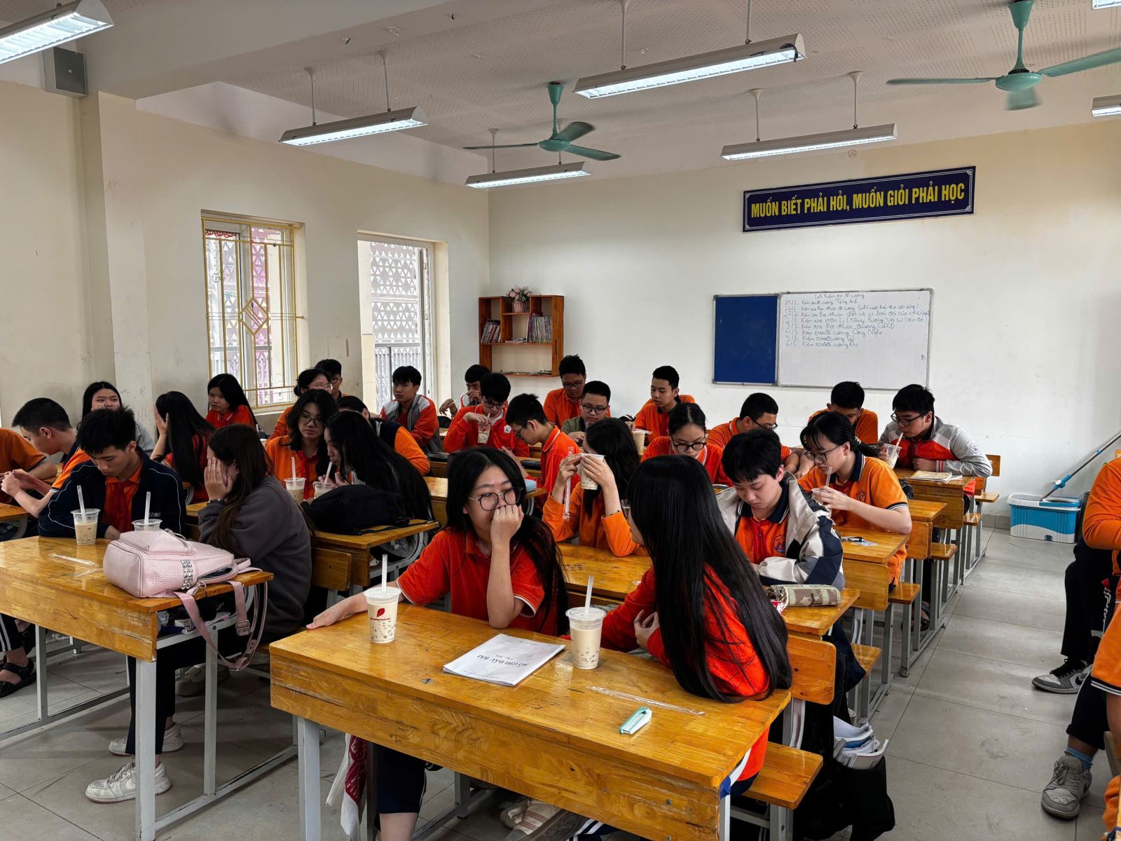 Bên cạnh đó, cả lớp còn cùng nhau thưởng thức trà sữa có thạch làm từ lá bàng – một thức uống độc đáo và nổi tiếng tại Di tích Hỏa Lò. Những ly trà sữa thơm ngon cùng những câu chuyện rôm rả đã khiến bầu không khí trở nên thoải mái và vui vẻ hơn. Mọi người vừa thưởng thức đồ uống, vừa trò chuyện, chia sẻ với nhau những câu chuyện học tập và cuộc sống, tạo nên một buổi sinh hoạt gần gũi và đáng nhớ.