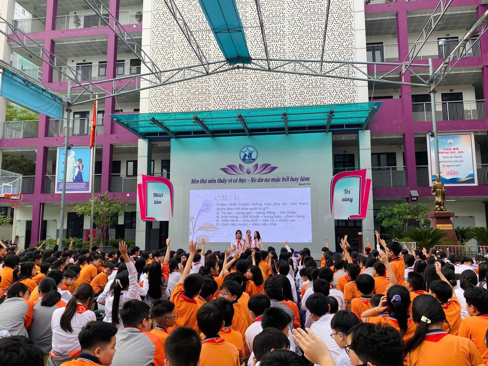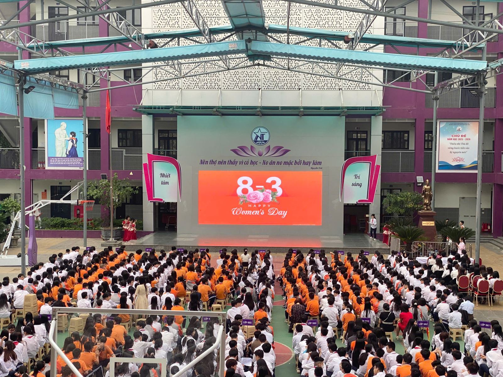 Sáng thứ Hai, ngày 02/3, trường THCS Nguyễn Trãi đã tham gia buổi sinh hoạt dưới cờ đầu tuần với chủ đề “Chào mừng ngày Quốc tế Phụ nữ 8/3” trong không khí trang nghiêm và ấm áp.