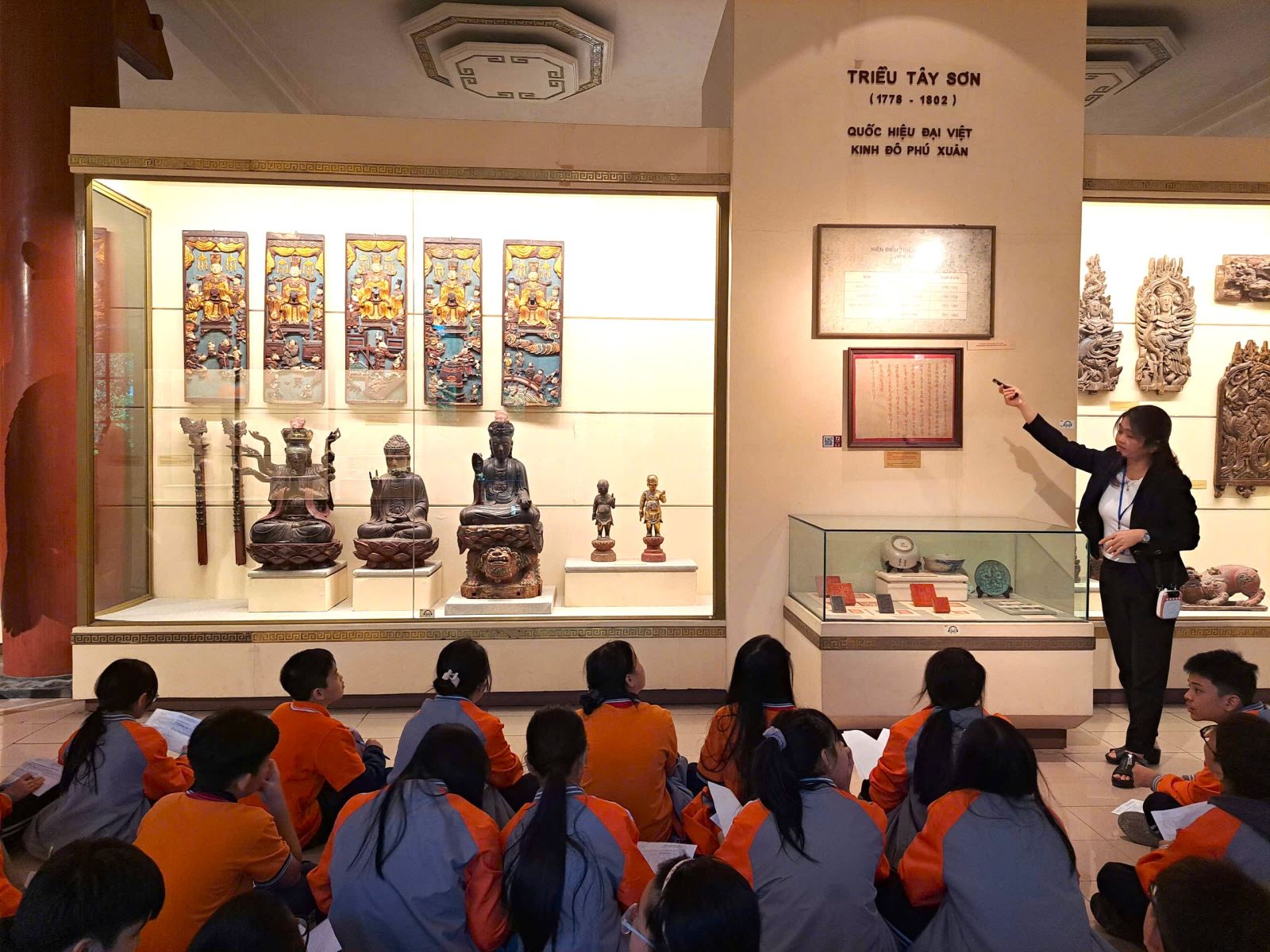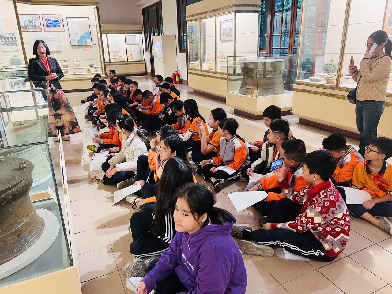 Học sinh khối 6 trường THCS Nguyễn Trãi (phường Giảng Võ) khám phá hành trình lịch sử Việt Nam tại Bảo tàng Lịch sử Quốc gia