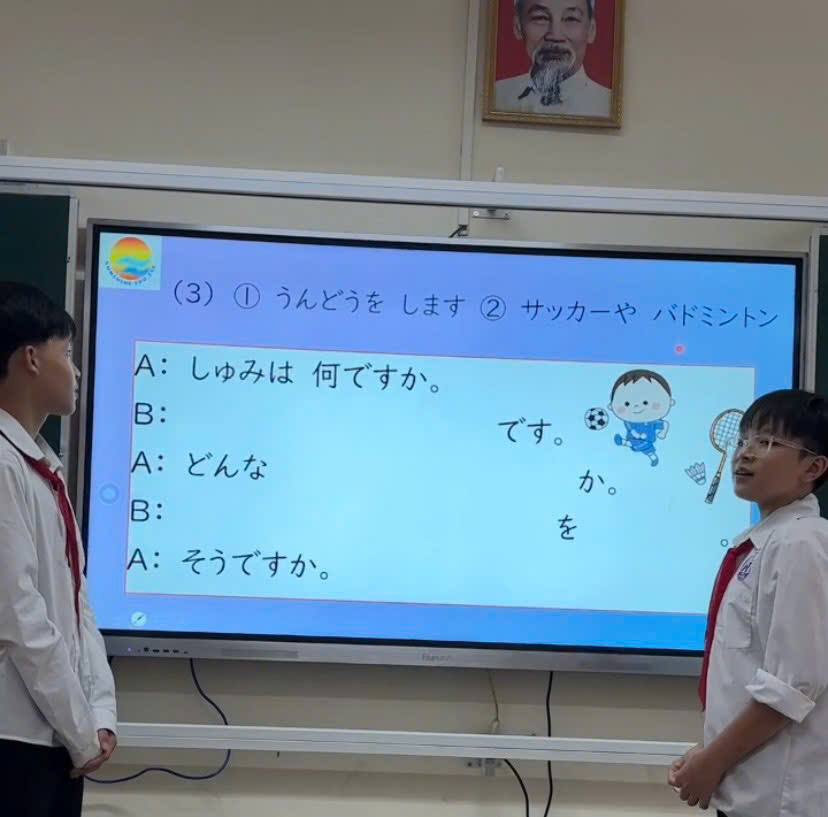 Không chỉ học từ vựng, chúng em còn được tham gia các hoạt động giao tiếp như chào hỏi, giới thiệu bản thân bằng tiếng Nhật. Thầy còn tổ chức những trò chơi nhỏ giúp củng cố bài học, khiến ai cũng tích cực tham gia và cảm thấy thích thú hơn.