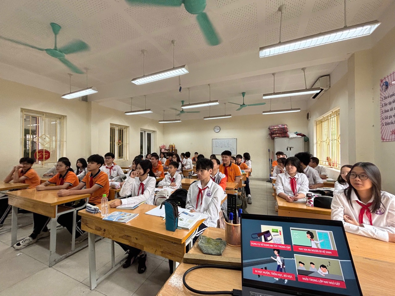 Sáng thứ Hai, ngày 30/3/2026, trong tiết Hoạt động trải nghiệm, nhà trường đã tổ chức tuyên truyền phòng, chống ma túy tới toàn thể học sinh. Theo đó, giáo viên chủ nhiệm các lớp đã trực tiếp phổ biến nội dung thông qua video tuyên truyền do Công an phường Giảng Võ cung cấp. Nội dung clip tập trung vào việc nhận diện các loại ma túy, tác hại nguy hiểm cũng như các kỹ năng phòng tránh, góp phần nâng cao ý thức cảnh giác cho học sinh.