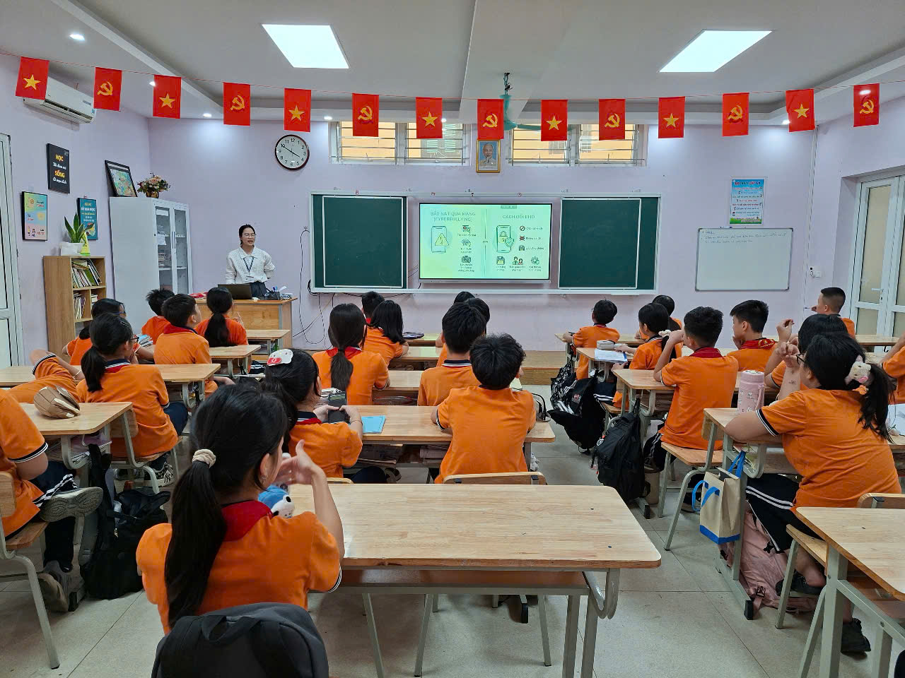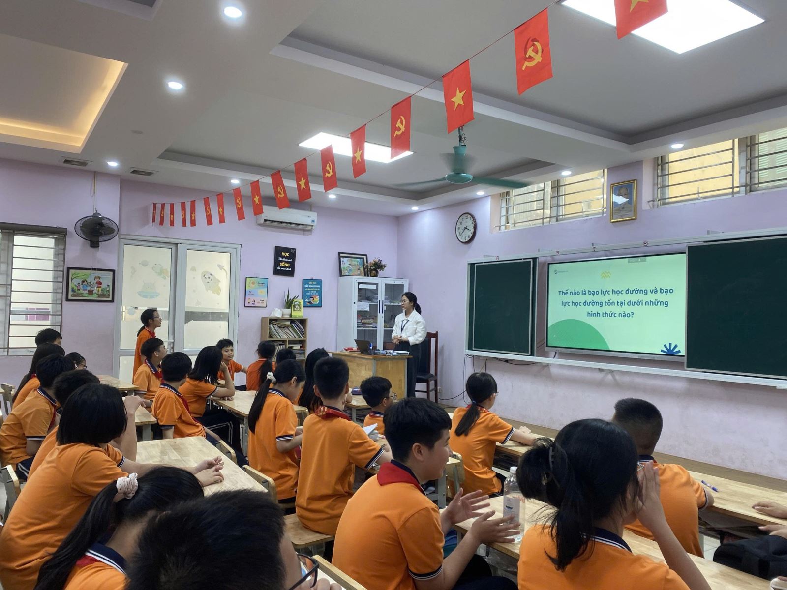 Một điểm nổi bật của buổi sinh hoạt là phần xây dựng cam kết “Nói không với bạo lực học đường”. Từng thành viên lớp 6A5 đã cùng nhau đề ra những quy tắc ứng xử thân thiện, tích cực và đồng lòng thực hiện để xây dựng một môi trường học tập an toàn, lành mạnh. Nhiều bạn học sinh cũng đã mạnh dạn chia sẻ suy nghĩ, cảm nhận của mình, góp phần làm cho buổi sinh hoạt thêm ý nghĩa và sâu sắc.
