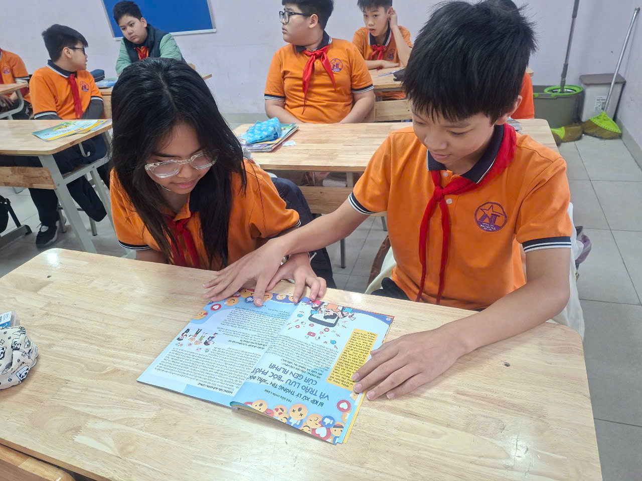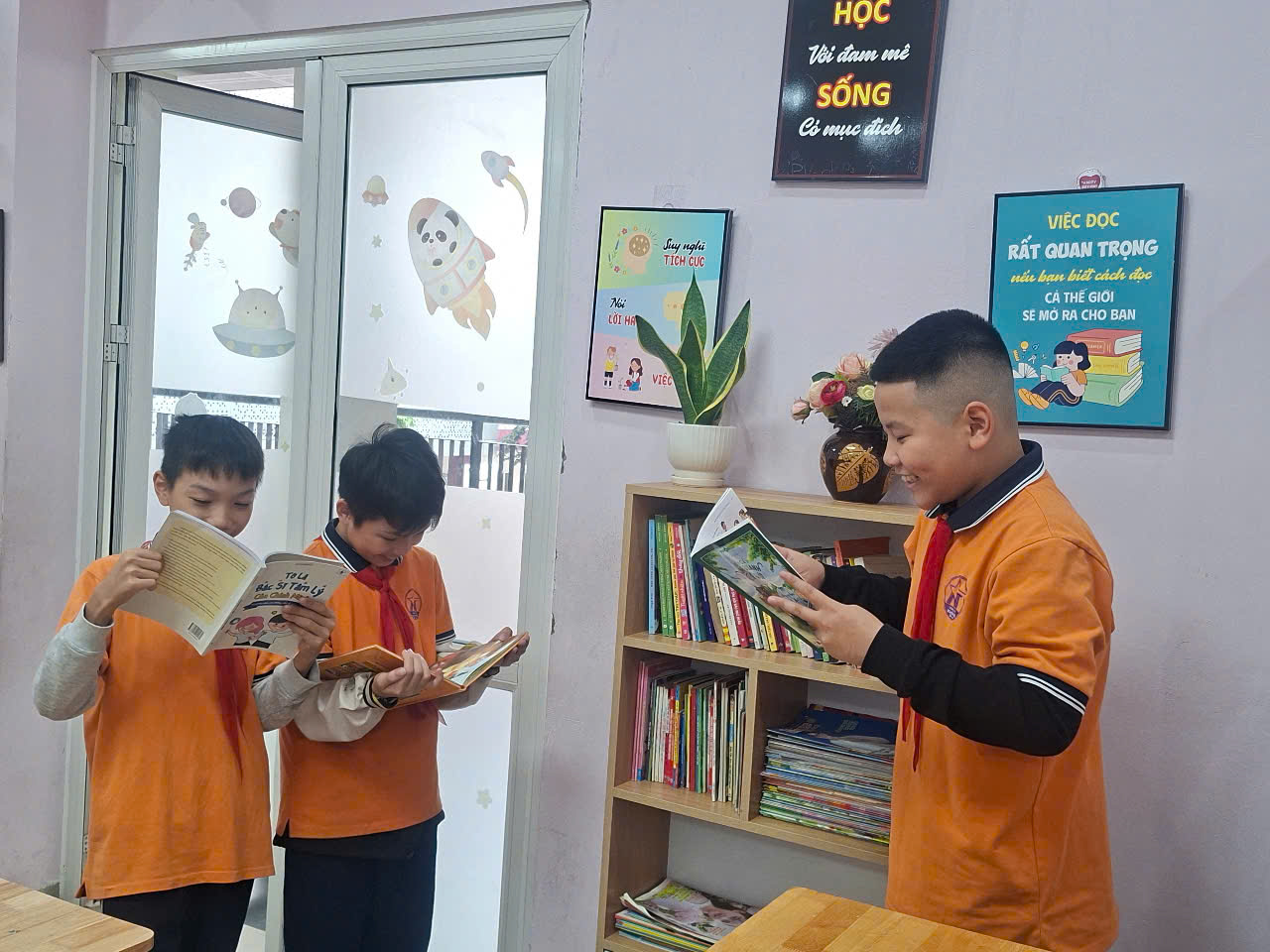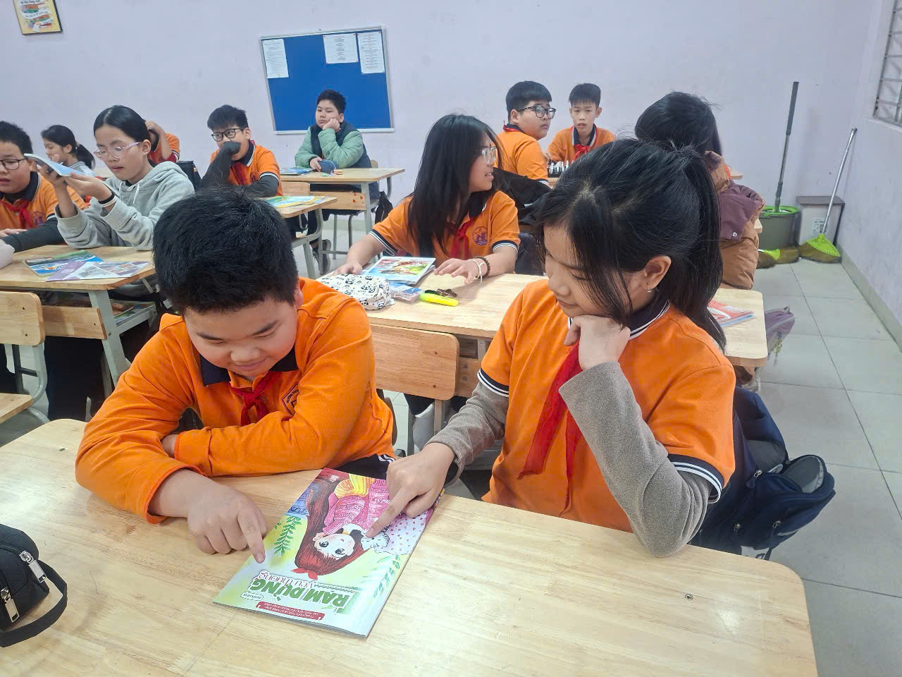 🌿 Trong những giờ ra chơi, thay vì chỉ tham gia các trò chơi quen thuộc, các bạn học sinh lớp 6A5 lại cùng nhau đến với “tủ sách lớp học” – một góc nhỏ nhưng chứa đựng cả thế giới tri thức. Những cuốn truyện tranh hấp dẫn, những cuốn sách kỹ năng sống bổ ích, hay những trang sách văn học giàu cảm xúc… đều được các bạn hào hứng đón đọc. Có bạn say sưa đọc từng trang, có bạn lại cùng nhau trao đổi, chia sẻ nội dung sách, tạo nên một không gian học tập nhẹ nhàng nhưng vô cùng ý nghĩa.