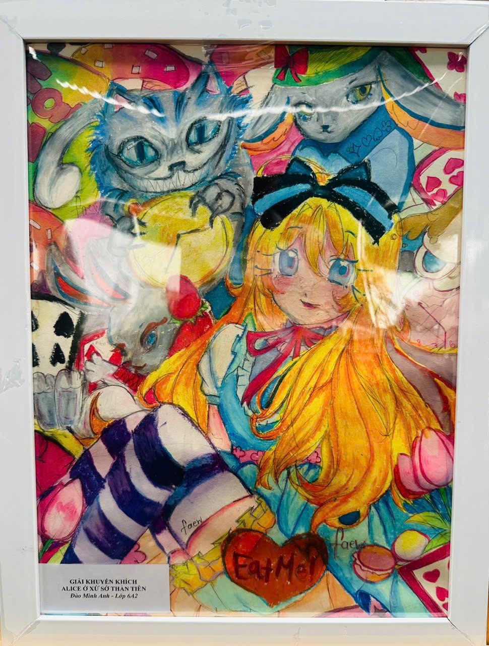 Tác phẩm vẽ Alice ở Xứ Sở Thần Tiên của bạn Minh Anh đã thể hiện một thế giới đầy màu sắc tươi sáng và cách thể hiện sinh động. Nhân vật Alice được khắc họa rõ nét, mang đến cảm giác hồn nhiên, nhẹ nhàng đúng với tinh thần của câu chuyện.