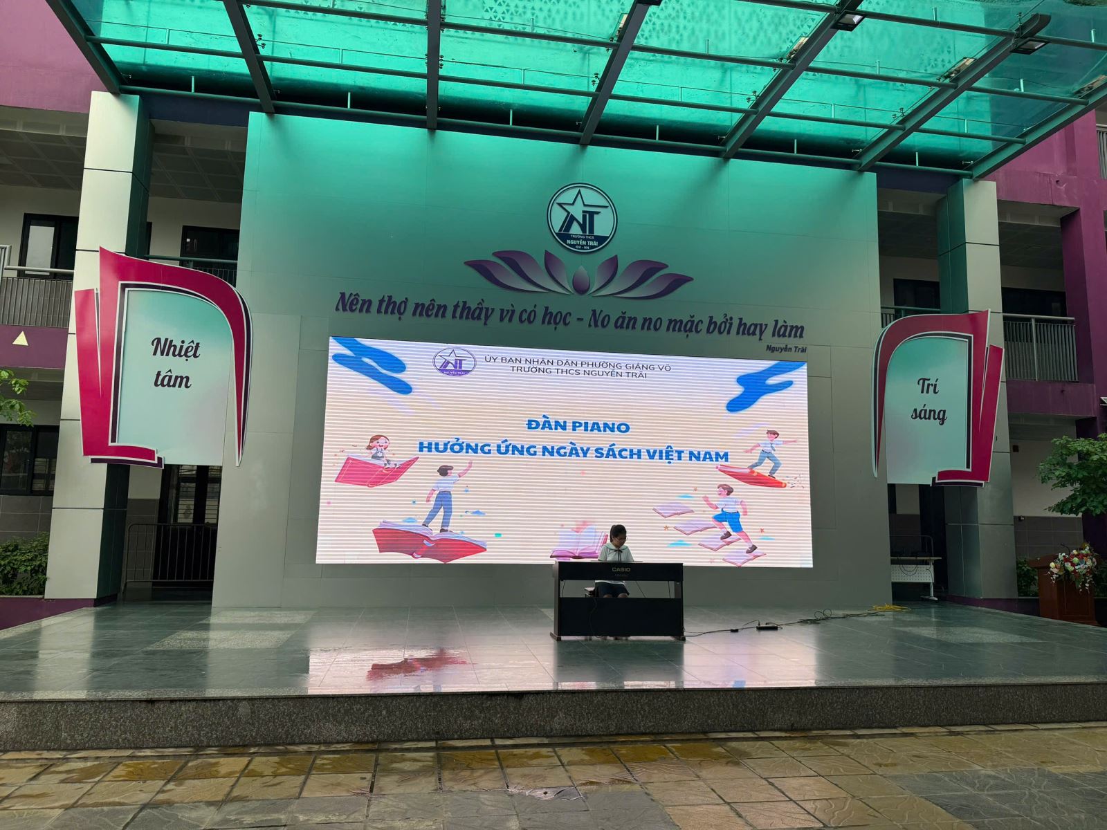 Ngày hội đọc sách của Trường THCS Nguyễn Trãi diễn ra vào sáng ngày 16/4/2026 không chỉ là dịp để học sinh tìm hiểu thêm về những cuốn sách hay mà còn là cơ hội để các lớp tham gia biểu diễn những tiết mục văn nghệ đặc sắc. Đối với chúng em – học sinh lớp 6A1, ngày hội này càng trở nên đáng nhớ khi lớp vinh dự đóng góp hai tiết mục văn nghệ chào mừng chương trình.