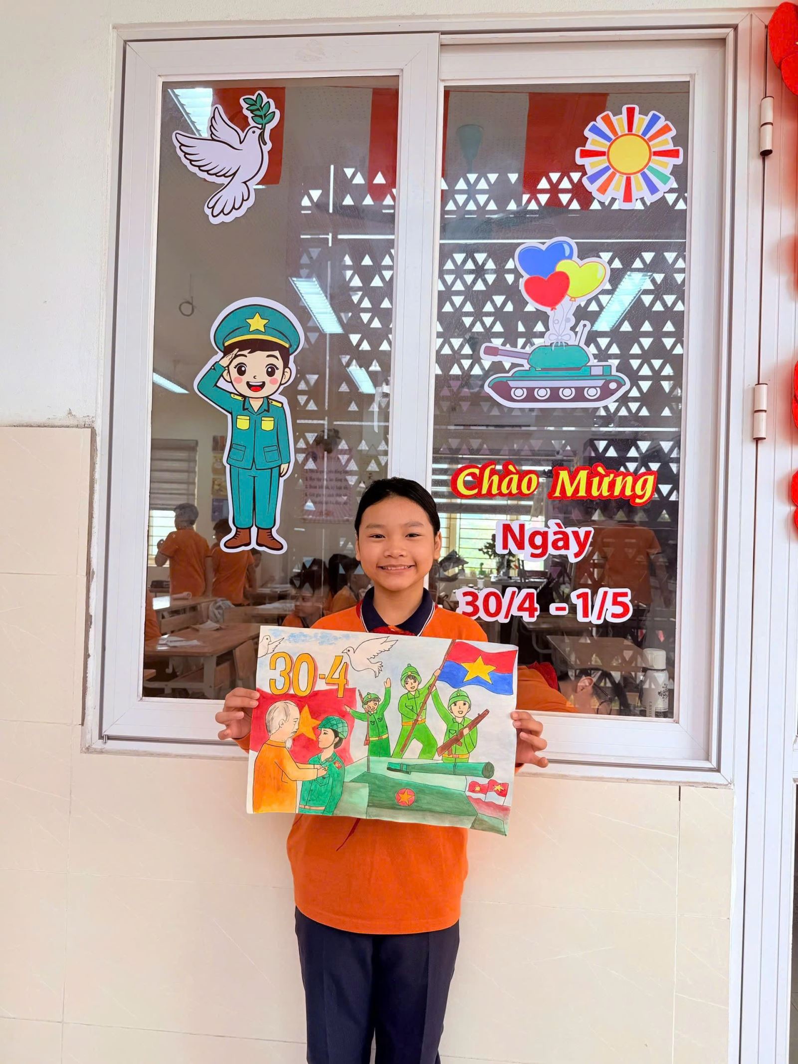 Bức tranh của Quỳnh Anh được thể hiện với bố cục rõ ràng, màu sắc hài hòa, tái hiện sinh động không khí hào hùng của những ngày lịch sử. Hình ảnh Bác Hồ, các chiến sĩ cùng lá cờ Tổ quốc tung bay đã truyền tải thông điệp sâu sắc về tinh thần yêu nước, niềm tự hào dân tộc và ý nghĩa thiêng liêng của ngày 30/4 – Ngày Giải phóng miền Nam, thống nhất đất nước.